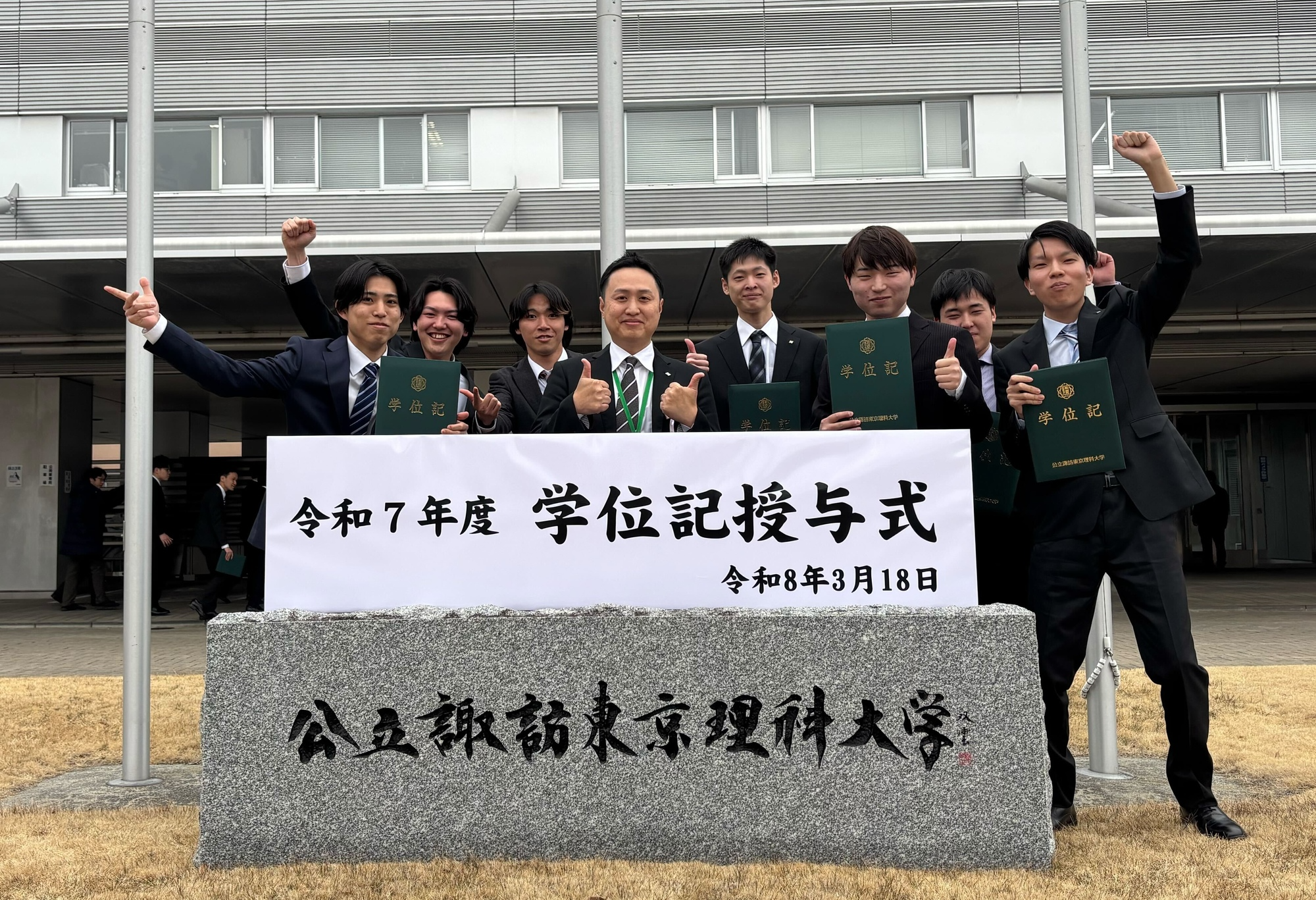 On March 18, 2026, the graduation ceremony was held, and the undergrad students of the Sakurai Laboratory graduated with a "Bachelor of Engineering".